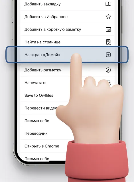 Нажмите в нижнем меню браузера центральную иконку Поделиться